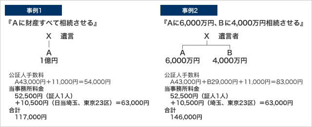 ※ 1通の遺言公正証書における目的価額の合計額が1億円までの場合は、1万1000円を加算